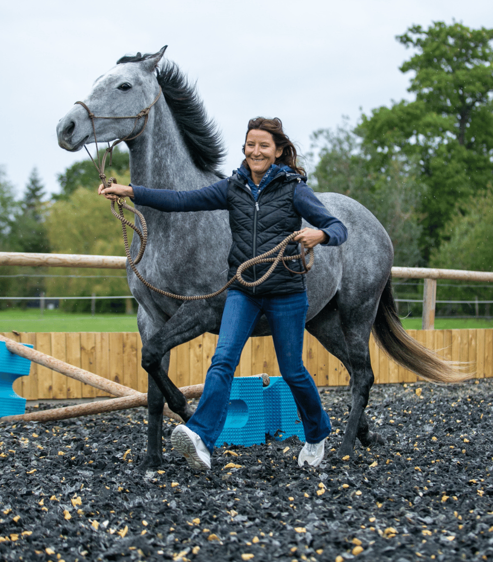 Ma particularité est d’intégrer le cheval dans mes accompagnements sous la forme de séances d’Équicoaching, exercices à pied avec le cheval en liberté et en longe, qui sont accessibles sans aucune pré-disposition sportive.
